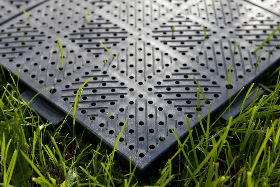Unsere Rasenschutzplatten schützen gepflegtes Grün gegen Vertritt und Verdichtung und versorgen den Untergrund während der Abdeckung mit Wasser und Licht.